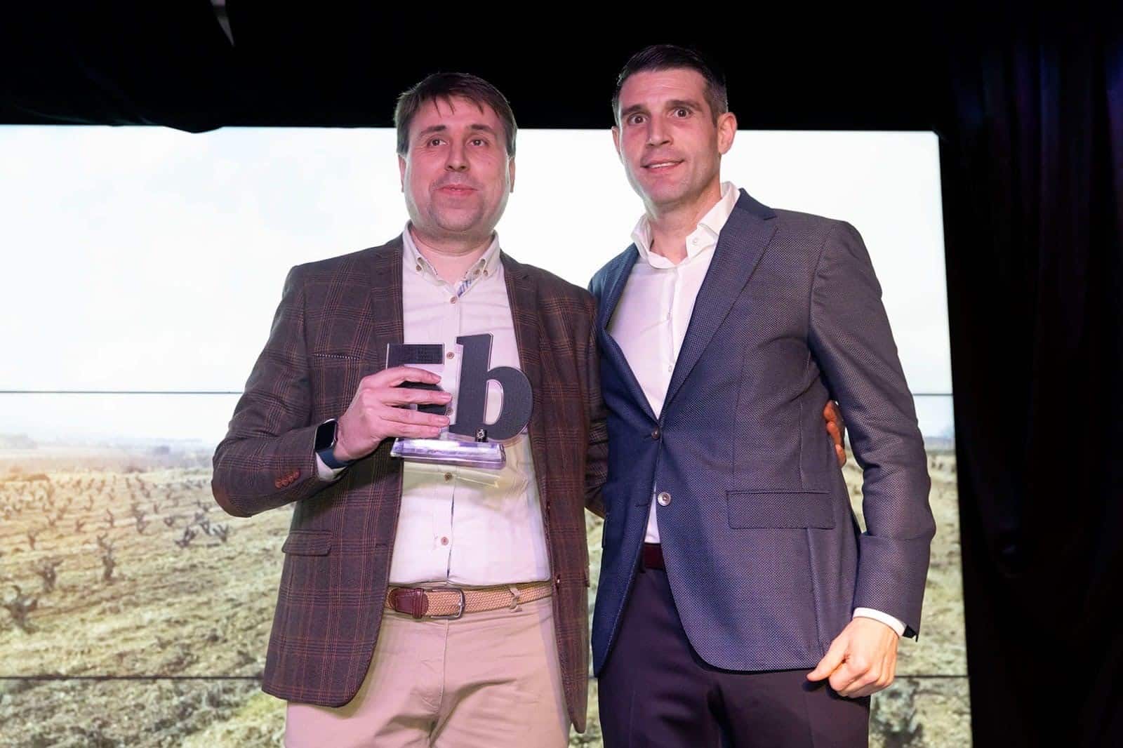 Sergio Belda, director de La Viña, recogió el galardón de manos de Juan Galiano, del Grupo Cooperativo Cajamar.