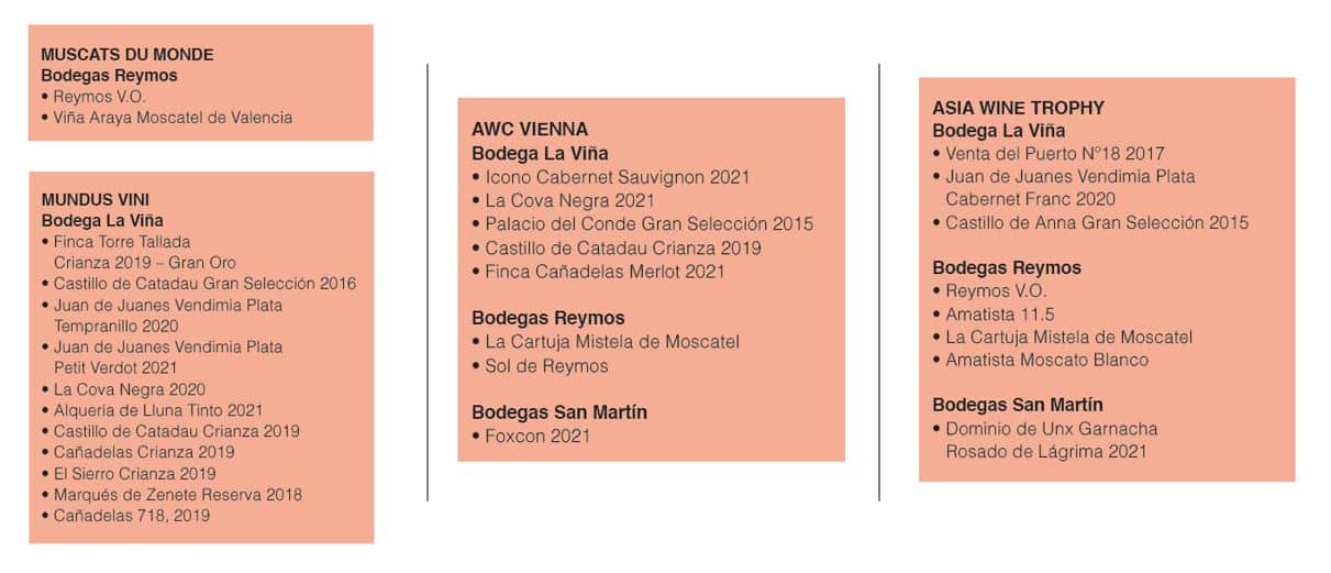 Grandes noticias en el arranque del ejercicio para Anecoop Bodegas y sus socias Bodegas Reymos, La Viña (ambas con D.O.P. Valencia) y Bodegas San Martín y Proyecto Unsi (D.O. Navarra)
