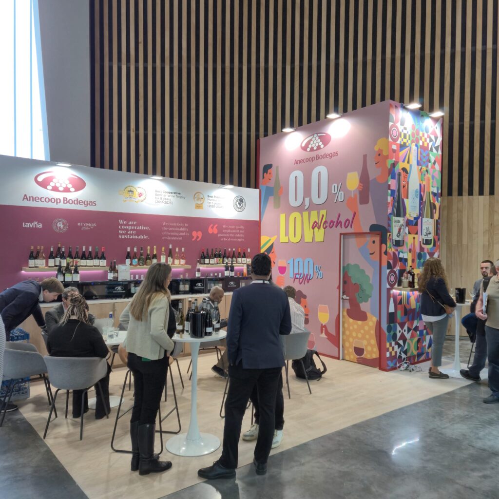 Con un espacio expositivo propio, ubicado en el Hall 6-Stand K255, Anecoop Bodegas desplegará la calidad y diversidad de los vinos elaborados por sus bodegas socias: Cooperativa La Viña (La Font de la Figuera), Bodegas Reymos (Cheste) y Bodegas San Martín y Proyecto Unsi (San Martín de Unx).