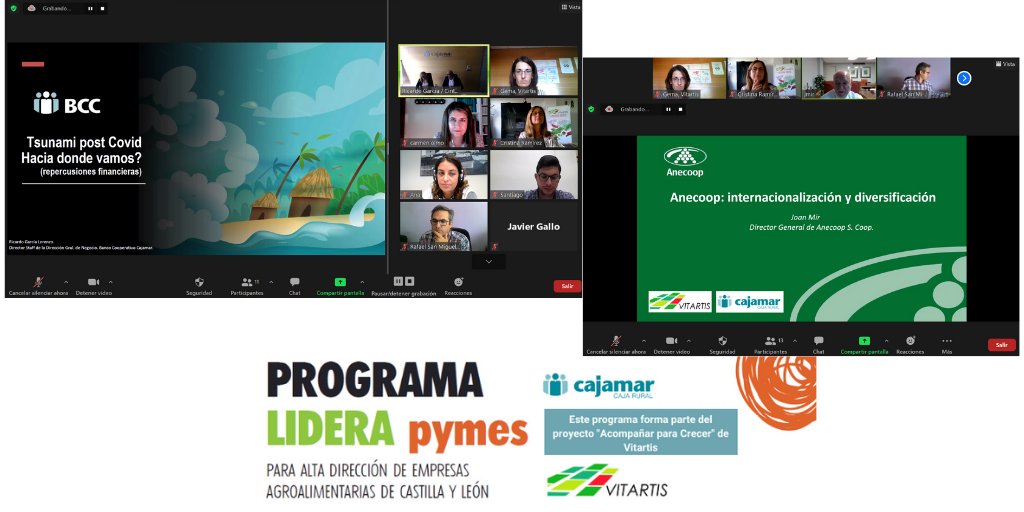La segunda, se enmarca dentro del Programa Lidera Castilla y León de Cajamar, una formación dirigida a empresarios y directivos de pymes y grandes empresas socias de Vitartis, dentro del proyecto «ACOMPAÑAR PARA CRECER» puesto en marcha por esta Asociación de la Industria Alimentaria de Castilla y León y cuyo objetivo es apoyar el dimensionamiento de las empresas socias mediante la formación de los empresarios y la mentorización de empresas más grandes a empresas más pequeñas.