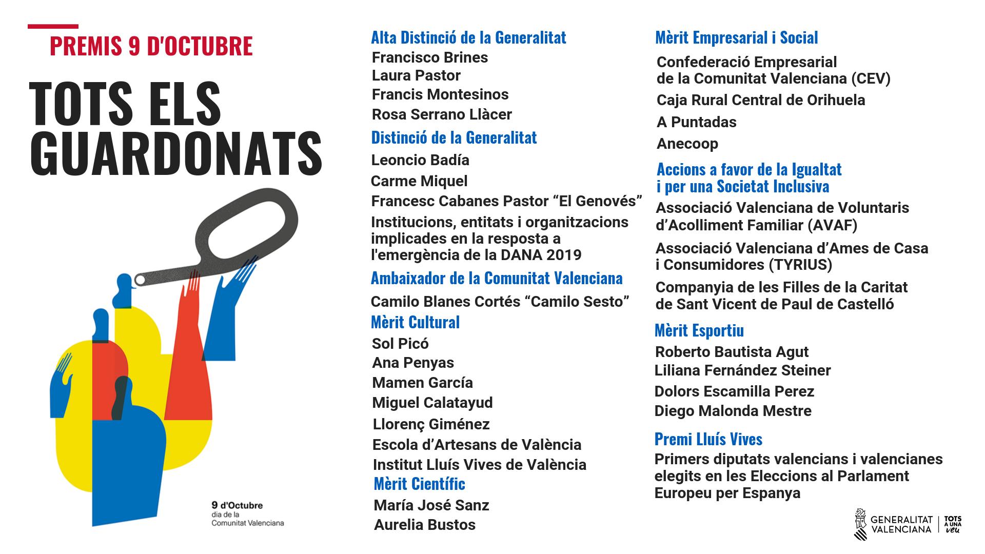La entrega de Premios tendrá lugar en el Palau de la Generalitat durante el Acto Institucional que se celebrará el próximo miércoles.