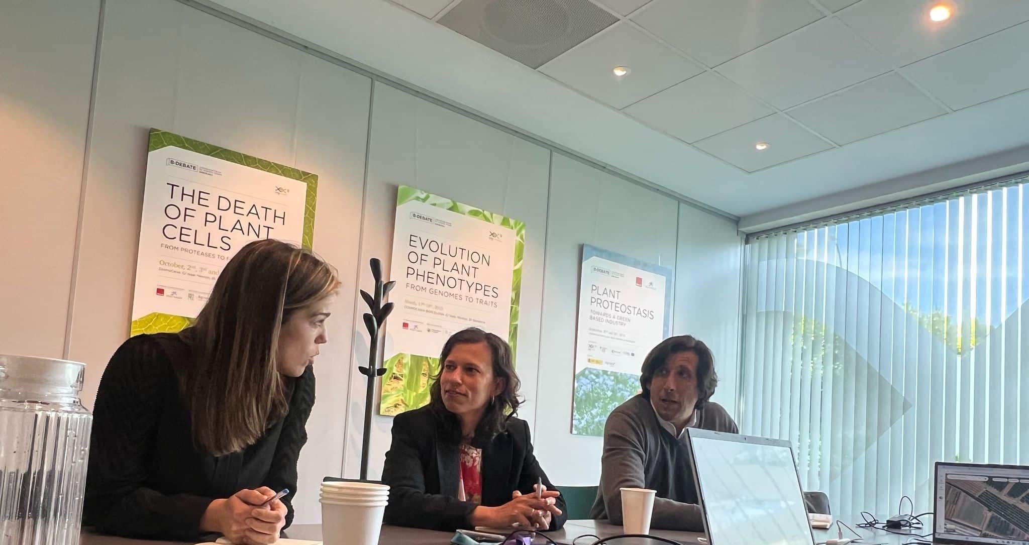 Por parte de la spin-off asistieron a la reunión Ana I. Caño-Delgado, fundadora y directora científica; Andrea Giordano, responsable de desarrollo de producto, y Sergio Ortiz, responsable de desarrollo de negocio.