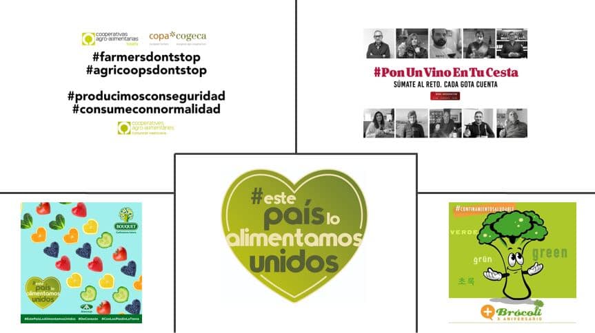 En el ámbito europeo, el COPA-COGECA lanzó a mediados de marzo la campaña #farmersdontstop, #agricoopsdontstop, que en España, y a través de Cooperativas Agro-Alimentarias, se ha adoptado con los lemas #losagricultoresnoparan y #lascooperativasnoparan, añadiendo además los hashtag #producimosconseguridad y #consumeconnormalidad para comunicar a la población que el abastecimiento es seguro y constante.