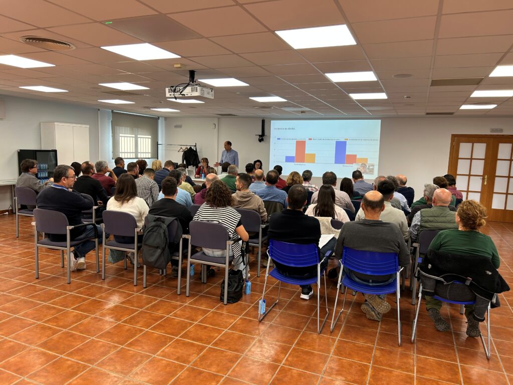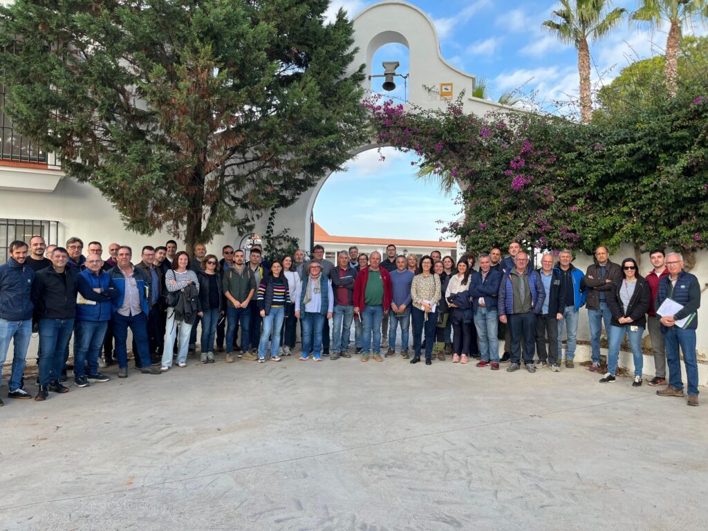Tras la visita, la reunión mensual de coordinación de los técnicos se celebró en la sala de formación de la Masía, esta vez con la participación conjunta de profesionales de toda la Comunidad Valenciana. El encuentro permitió analizar la situación actual del cultivo, compartir experiencias y definir líneas de actuación frente a los retos fitosanitarios y comerciales, entre otros importantes temas.