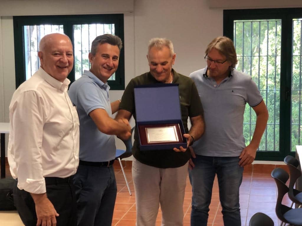 Pie de foto: Durante la celebración de la reunión del Consejo Rector de Anecoop el pasado 22 de junio, el presidente de Anecoop, Alejandro Monzón, el vicepresidente, Miguel Ángel Navarro Artero, y el director general de la entidad, Joan Mir, hicieron entrega de una placa conmemorativa del Centenario al presidente de Rural Sant Vicent Ferrer, José Vicente Navarro Arnal.