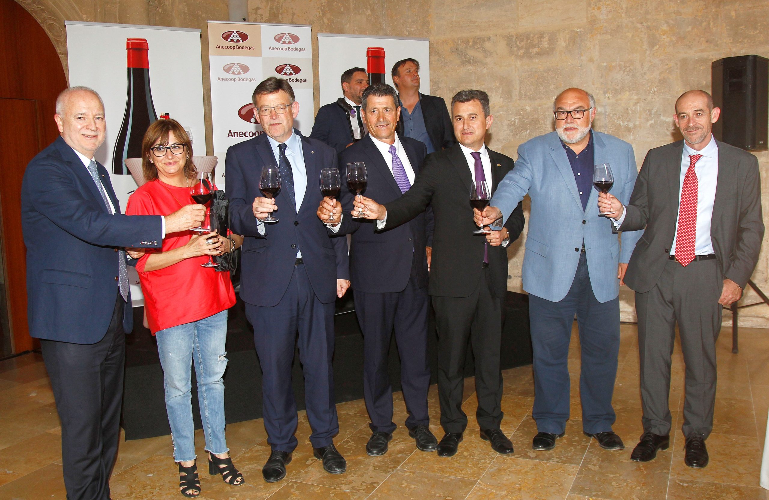 El Presidente de la Generalitat, Ximo Puig, el Secretario Autonómico de Agricultura, Francisco Rodríguez Mulero, el Director General del Observatorio del Vino, Rafael del Rey, restauradores y prensa especializada han asistido al evento de presentación de un nuevo vino de gama alta elaborado por una de las bodegas socias de Anecoop Bodegas: Bodega Vinos de La Viña (La Font de la Figuera).